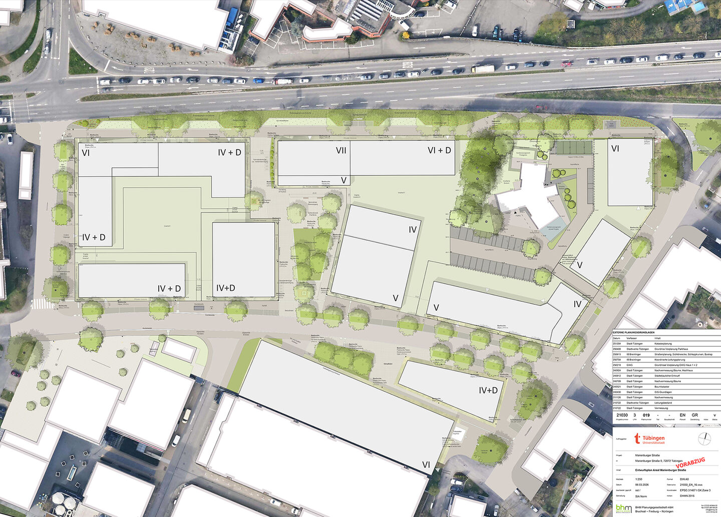Auf Grundlage der 2023 vom Gemeinderat beschlossenen Fortschreibung des Rahmenplans wurde 2024 der städtebauliche Entwurf ausgearbeitet. Im Mai 2025 beschloss der Gemeinderat die Aufstellung des Bebauungsplans „Marienburger Straße“. Dieser trat mit der Bekanntmachung am 20. August 2025 in Kraft.