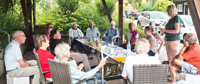 Kernstück des Projektes waren Tisch- und Platzgespräche. Mit Pedelec und Fahrradanhänger, in dem Tische, Sitzgelegenheiten, Getränke und Snacks verstaut waren, suchte die Stadtteilsozialarbeiterin an verschiedenen Orten im Stadtteil das Gespräch mit Bewohnerinnen und Bewohnern. Auf diese Weise kommt man sehr niederschwellig mit Interessierten ins Gespräch.